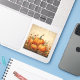 Konfektionieren Sie den Aufkleber mit einer rustikalen Abbildung mit orangefarbenen Kürbissen und Herbstlauben. Eine Herbstgrunge-Atmosphäre.
