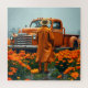 Die Farbe Orange ist die Hauptfarbe, mit einem orangefarbenen LKW, orangefarbenen Blume und orangefarbenen Kleidern.