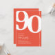 Eine lustige orangefarbene und weiße 90. Geburtstagsfeier, die nahtlos den Charme der alten Welt des fetten Serif-Schriftartes '90' mit einer modernen, benutzerfreundlichen, personalisierbaren Vorlage verbindet. Diese Einladung ist nicht nur eine Karte, sie ist ein bedeutsamer Sake, um den Meilenstein der 90.