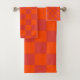 Orange Red Checkered Gingham Pattern Badhandtuch Set