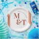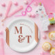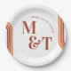 Orange Retro Seventies Streifen | Hochzeitsmonogra Pappteller