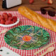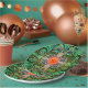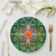 Orange Rose auf grünem, elegantem Muster Pappteller