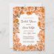 Diese elegante Rose mit Blumendusche in Orange verkörpert Romantik und Schönheit, die das Wesen der Liebe und Freude um Ihre kommende Hochzeit erfassen. Die lebhaften orangefarbenen Rose stehen im Zentrum der Bühne und symbolisieren Optimismus, Zuversicht, Begeisterung und Wärme. Die anpassbare Typografie lasse Ihnen, die Einladung mit Ihrem Namen, Ihrem Duschdatum und allen anderen wichtigen Informationen zu personalisieren.