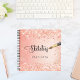 Ein goldener Hintergrund in Orange und Rose. Dekoriert mit Imitaten Glitzer Glitzern. Personalisieren und fügen Sie einen Namen, Der Titel: Sketchbook geschrieben mit einem mädchenhaften, handgeschriebenen Stil Skript mit Swashes und ein Pinsel. Schwarze Buchstaben. Ein Notizbuch für Zeichnungen, Skizzen, Noten und Hausaufgaben in der Schule.