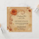 Dieses wunderschöne Design, genannt Orange Rose im Herbst, wäre eine elegante und dramatische Art, den Ton für Ihren Hochzeitstag oder Ihre Veranstaltung Set. Der Hintergrund ist dunkelcremefarben mit einem dunkelpfirsichfarbenen Band und herbstfarbenen Blätter. In der oben links Ecke befindet sich eine wunderschöne orange Rose.