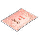 Ein goldener Hintergrund in Orange und Rose. Mit Konfetti dekoriert. Personalisieren und fügen Sie einen Titel und einen Namen hinzu. Ein Notizbuch, Journalismus, Hausaufgaben in der Schule. Der Name ist mit einem modernen Skript geschrieben, Signatur-Look.