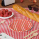 Orangefarbenes, rotes, terracotta polka dot pattern with white, polka dots, simple, minimalistisch, retro, simple, weiße polka dots, retro polka dots