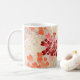 Bunte Tasse verziert mit den roten, orange und SahneBlumen auf einem hellen Grungehintergrund. Ursprüngliche Illustration durch Ruxique - ©2010 Ruxandra Proksch.