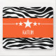 Das moderne und trendige Sassy Star Zebra Mousepad besticht durch einen schicken schwarz-weiß zebrafarbenen Hintergrund und einen fett orangen Rahmen mit einem lustigen Sternmotiv. Dieses mädchenhafte Design kann mit dem personalisierten Text Ihrer Wahl angepasst werden. Klicken Sie auf "Anpassen", um weitere Personalisierungsoptionen zu erhalten.