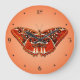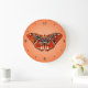 Orange, Schwarz-Weiß-Schmetterling Große Wanduhr