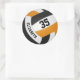 Diese Turnierfarben sind mit einem Volleyball-Rundaufkleber für Jungen oder Mädchen ausgestattet. Die Volleyballgrafik mit Schwarz-, Orange- und Weißtafeln ermöglicht es, den Namen und die Jersey-Nummer des Spielers in einem Schriftart im Buchstabenstil - von katz_d_zynes