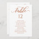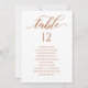 Modernes und elegantes Design bedruckt Burnt Orange Kalligrafie Script Tischnummer Seating Chart Cards, die mit Ihrem Text angepasst werden können und fügen Sie jede Tischnummer Karte zu Ihrem Warenkorb, eins nach dem anderen. Bitte klicken Sie auf den Button "Anpassen" und verwenden Sie unser Design-Tool, um diese Vorlage zu ändern. Karo im Grafikdesign-Store für andere Produkte, die diesem Design entsprechen!