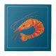 Bring the spirit of the ocean to your home decor with this striking coastal-themed ceramic tile. Showcasing a bold, graphic illustration of an orange shrimp, this design pops against a rich blue backdrop. The simple yet elegant white border frames the artwork, making it suitable for a variety of kitchen and bathroom styles. This tile is an excellent choice for creating a unique backsplash, adding a decorative element to a fireplace surround, or enhancing any space that needs a splash of marine-inspired art. It's a wonderful way to celebrate a love for seafood and the coast.