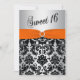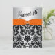 Orange, Silber, Schwarzer Damast Sweet 16 Einladun Einladung