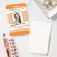 Schlichtes und modernes Abzeichen in Orangetönen. Es gibt Platz, um den Namen der Schule oder Uni, den Namen des Lehrers, die Abteilung oder das Fach, die allgemeine Position und Ihr Foto hinzuzufügen. Klicken Sie auf "Personalisieren Sie diese Vorlage", um Ihre persönlichen Daten hinzuzufügen.