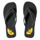 Orangefarbenes Symbol. Benutzerdefinierte Hintergrundfarbe. Benutzerdefinierter Text auf jedem Sandal.
