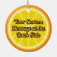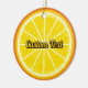 Runder Schnitt mit orangefarbenem Hintergrund. Benutzerdefinierter Text auf beiden Seiten.