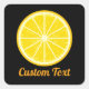 Runder Schnitt mit orangefarbenem Symbol. Benutzerdefinierte Hintergrundfarbe. Eigener Text.