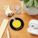 Runder Orangenschnitt. Benutzerdefinierte Hintergrundfarbe. Benutzerdefinierter Text auf beiden Seiten.