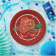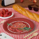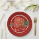 Die Teller des Herbstpapiers sind mit orangefarbenen Scheiben, Zimtsticken und Beeren auf tiefrotem Hintergrund gestaltet. PASSENDE Artikel in unserem Geschäft.