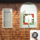 Orangefarbene Scheiben, Zimtsticks, Poinsettias und Grünpflanzen werden in diesem Fenster zusammen mit jedem Text, den Sie auswählen, angezeigt. Wählen Sie JEDE GRÖSSE und *Klammern auf der Vorder- (innen) oder Rückseite (außen) des Fensters. (Die angezeigte Größe beträgt 24" x 24", kann aber größer oder kleiner sein.)