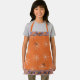 Treten Sie ein in die bezaubernde Welt von Halloween mit unserer faszinierenden Spooky Spiders Orange Kids Schürze. Handgezeichnet Spinnmuster und Spinnennetze. Wunderschönes Halloween-kariertes Muster auf der oberen und unteren Ebene. Das untere steht "Happy Halloween". Personalisieren Sie mit einem Namen!