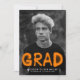 Die urbane, trendige Foto Graduierungsparty lädt ein, das Foto des Absolventen mit "Grad" in einem orangefarbenen, sprühfarbenen Farbtypografie-Stil zu präsentieren. Personalisieren Sie die Front, indem Sie den Namen des Absolventen, den Schulnamen und das Abschluss Jahr. Die Ankündigung des modernen Abschlusses kehrt zurück, um die Details Ihrer Graduierungsparty in Weiß vor einem orangefarbenen Hintergrund oder einer Farbe Ihrer Wahl zu präsentieren.
