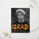 Trendy foto graduation party einladung postcard featuring the graduate's vertikale foto with "Grad" in an orange spray paint typography style. Personalize the front by adding the graduate name, school name, and graduation year. Die modern graduation party lädt reverses to display your return address and graduation party details ein.