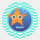 Orange Starfish; Aqua Green Zickzack Runder Aufkleber