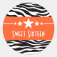Trendy und modern Stars Zebra Print 16 . Geburtstag Stickers mit einem schicken schwarz-weiß Zebra Print Hintergrund und einer fett orangefarbenen Rahmen mit einem lustigen Sternmotiv. Diese gürtelhaften Aufkleber sind eine angesagte und stilvolle Wahl für einen lustigen süßen 16. Einfach anpassen, einfach Party-Details in den Textfeldern hinzufügen. Klicken Sie auf "Anpassen", um weitere Personalisierungsoptionen zu erhalten.