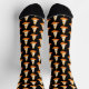 Schwarze Socken mit orange-weiß gestreiften Straßensperren bedruckt. Ideal für Bauarbeiter, Stadtarbeiter, Bauarbeiter und Autobahnarbeiter.
