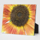 Diese phantastische Tafel zeigt ein detailliertes nah-up Foto einer hübsch orangefarbenen Sonnenblume. Das Foto wurde mit Makrofotografie aufgenommen und zeigt eine wunderschöne Sonnenblume mit einer hübschen Mischung aus orangefarbenen und gelben Blütenblättern.