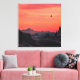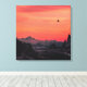 Berge Orange Sonnenuntergang Vögel in Sky Schnee bedeckten Berge mit Kiefern und schönen orangefarbenen Sonnenuntergang mit Wolken. Schneebedeckte Berge und ein Single, der in den Himmel hochsteigt.