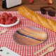 Ein Sonnenuntergang Foto von Destei mit warmen Orangen- und lila Farbtönen, die eine romantische und ruhige Atmosphäre schaffen. Ideal, um Hochzeitsfeiern, Verlobungsfeiern oder besonderen Feiern eine schöne, naturlich inspirierte Touch hinzuzufügen. Eine tolle Möglichkeit, den Zauber eines Seeufers Sonnenuntergang auf Ihre Tischtengeschirr zu bringen.