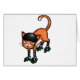 Eine leere Grußkarte, die einen Cartoon orange Tabby trägt 2 Paare der RolleSkate, der Schwarzweiss-stripey Socken und des Sicherheitssturzhelms kennzeichnet.