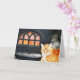 Diese Notenkarte zeigt eine orangefarbene Tigerkatze, die am Feuer eines Winters in Neuengland gemütlich bleibe.