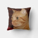 Nah-oben Profil Kopf der goldgelb orange gestreifte Tabby Katze. Kurz-haariges Kätzchen mit einem auffälligen Blick in den bernsteinfarbenen grünen Augen. Das Kätzchen hat eine niedliche kleine rosa Nase und lange Whiskers. Die Katze sitzt auf einem dunkelrostigen Sofa, das dem Foto einen eleganten, schönen Hintergrund verleiht. Passen Sie es mit Text weiter an, um ein perfektes Geschenk zu machen, besonders für jemanden in der Heimtierpflege- oder Veterinärbranche. Katzengesicht