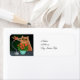 Ein orangefarbener Tabby #cat sitzt hinter einem Holztisch und schaut durch eine Lupe auf einem schönen #dragonfly. Sein Aussehen ist sehr intensiv und sein gelbes grünes Auge vergrößert sich.