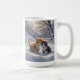 Süße kleine Kätzchen posieren auf dieser Tasse im Schnee.