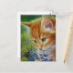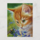 "Curious Kitten No. 2" Die Watercolor Art Postcard des Künstlers Jean Weiner "Curious Kitten No. 2" zeigt eine junge orangefarbene Tabbykatze, die eine Hummel studiert, die auf einer strahlend blauen Blume gelandet ist. Ihr Blick ist auf diesem geflügelten Insekt verschlossen und beschäftigt, Pollen zu sammeln. Dieses Kätzchen ist fasziniert von all den fliegenden Käfern in ihrem eigenen Garten, an einem warmen Sommertag. Dieses Bild wird bestimmt jeden Katzenliebhaber begeistern!
