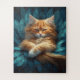 Orange Tabby Kitten in Bed of Blue Feathers Puzzle