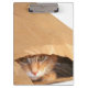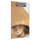 Orange Tabbykatze in der Papiertüte Klemmbrett