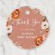 Diese bezaubernden Baby Duschgeschenke-Tags zeichnen sich durch trendigen Boho-Stil und trendige handgeschriebene Schrift aus, in der "Danke" steht. An der Grenze erscheint ein Terrakotta- und Pfirsichkranz von Blume mit Grünpflanzen und Blätter. Diese Anhänger stimmen sich perfekt mit unserer Baby Duschkollektion "orange terracotta boho rainbow" ab.