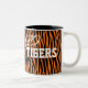 Geh TIGERS! Wenn Sie ein Fan der TIGERS sind, können Sie von dieser coolen Tigerhaut-Tasse Frischkaffee (oder Kakao) trinken. Orangefarbene Tigerstreifen mit den Worten "GO TIGERS".
