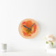 Diese phantastische Uhr zeigt ein schönes Foto einer orangefarbenen Tulpe in voller Blüte. Das Foto wurde mit Makrofotografie aufgenommen, um die subtilen Orangenfarben dieser Blume und die feinen Details der Blätter zu verdeutlichen. Die Blume wurde aus dem Foto geschnitten und auf einem hellorangen Hintergrund gehalten, um ihre Schönheit zu steigern.