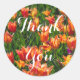 Vielen Dank, dass Sie Aufkleber mit einem Hintergrund von hellen orangen Tulips in einem Garten.