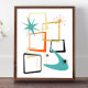 Füge diesen lustigen und farbenfrohen Splash zu deiner Wand mit diesem fabelhaften atomaren Zeitalter Mitte des Jahrhunderts modernes Poster hinzu! Abstrakte Quadrate, Sternexplosionen und ein Bumerang in den Farben Türkis, Blau, Orange, Creme, Gold und Schwarz...so funky!