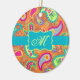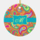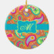 Orange Turquoise Modern Paisley Pattern Monogram Keramik Ornament