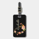 Gepäckumbau, der einen schwarzen Hintergrund mit orange rosa und grünen Blumen und einem kundenspezifischen Monogramm des Vornamens kennzeichnet