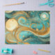 Orange- und Aqua-Galaxie mit Mondstern und Wirbel Seidenpapier